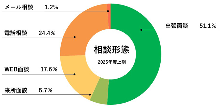 弊社は何よりも対面でのサービスを重視しておりますが、相談者が使いやすいように様々な相談形態でサービスを提供しています。
