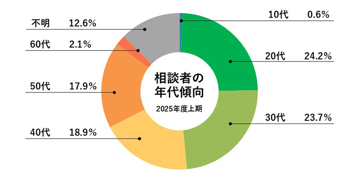 相談者の年代は主に20代、30代、40代が中心となっています。